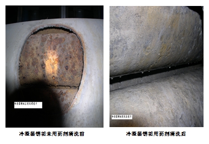 某單位冷渣器銹垢清洗前和用藥劑清洗后